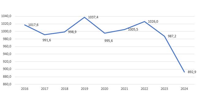 | Jornadas Completas Equivalentes (JCE) | 1.017,6 | 992 | 999 | 1.037 | 996 | 1.005 | 1.026 | 987,2 | 892,9 |